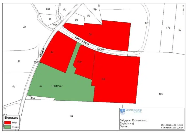 Vejen Kommune er med sin centrale beliggenhed i Sydjylland og med sin gode infrastruktur ideel til placering af erhvervsbyggeri. Nedennævnte erhvervsgrunde udbydes til salg med følgende mindstepriser pr. m2.